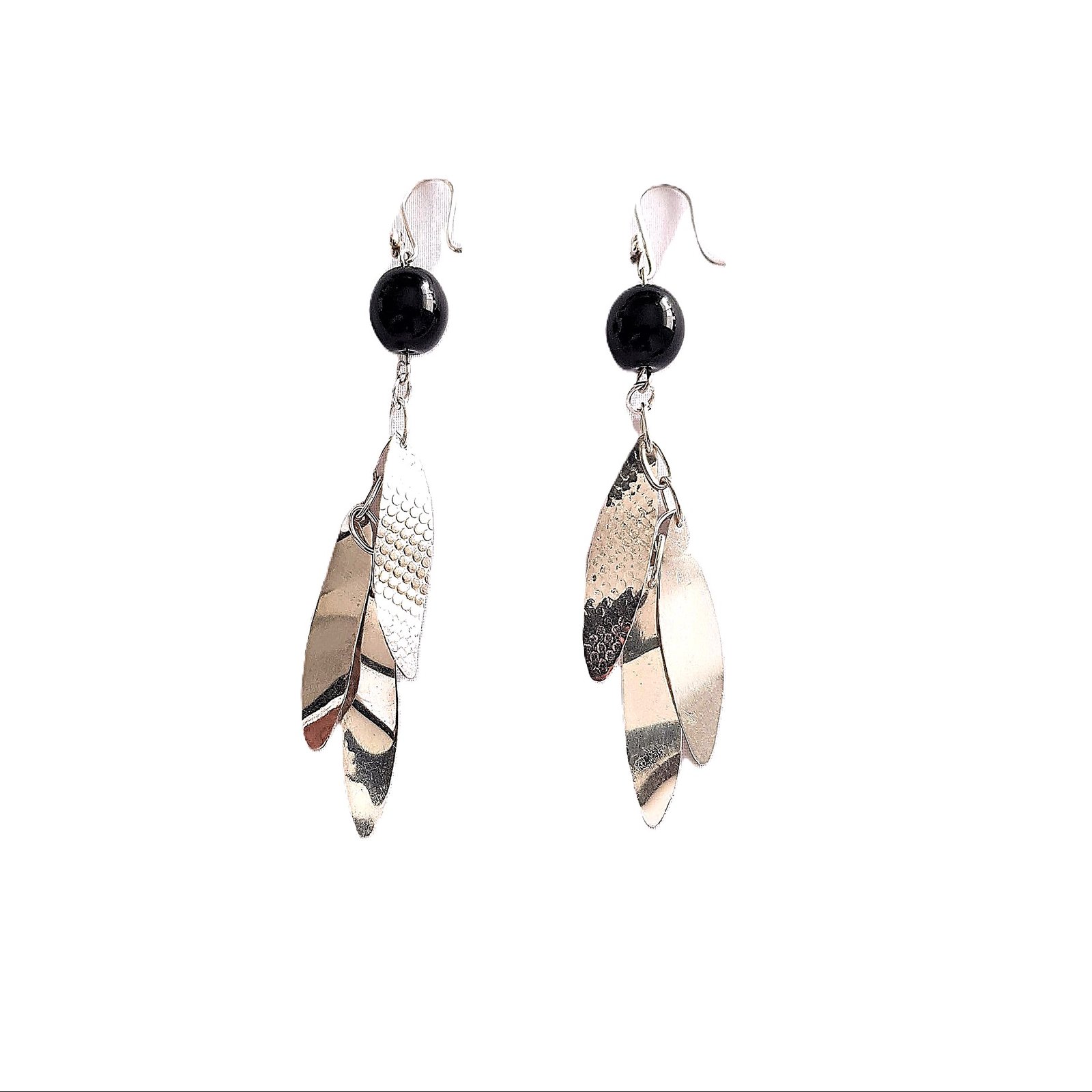El arete elaborado en plata peruana 950 garantiza una durabilidad y un acabo brillante , con piedra ónix es una joya que fusiona tradición y  calidad. Su diseño único, con un largo aproximado de 7 cm, es ideal para quienes buscan destacar con una pieza que refleja elegancia y sofisticación. Perfecta para cualquier ocasión.