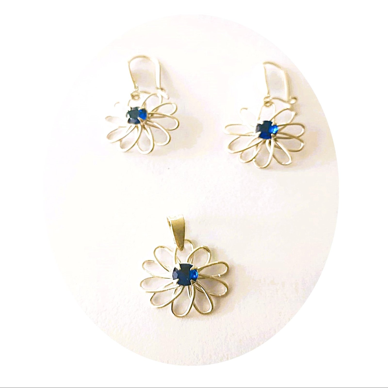 Descubre la belleza y delicadeza de la Colección Margarita, un conjunto único de 2 piezas que combina perfección artesanal y materiales de calidad excepcional. Esta colección incluye  un dije en plata peruana 950 con forma de margarita adornado con una piedra zircón azul, y unos elegantes aretes a juego fabricados en plata y zircón azul . Diseñado para realzar tu estilo en cualquier ocasión, este set es ideal para quienes buscan un toque de sofisticación y exclusividad en sus accesorios.